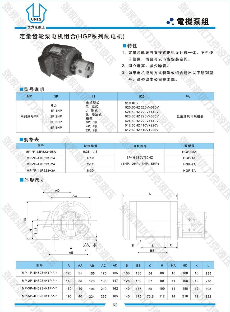 • 所屬分類:定量齒輪泵電機組合(HGP系列配電機)