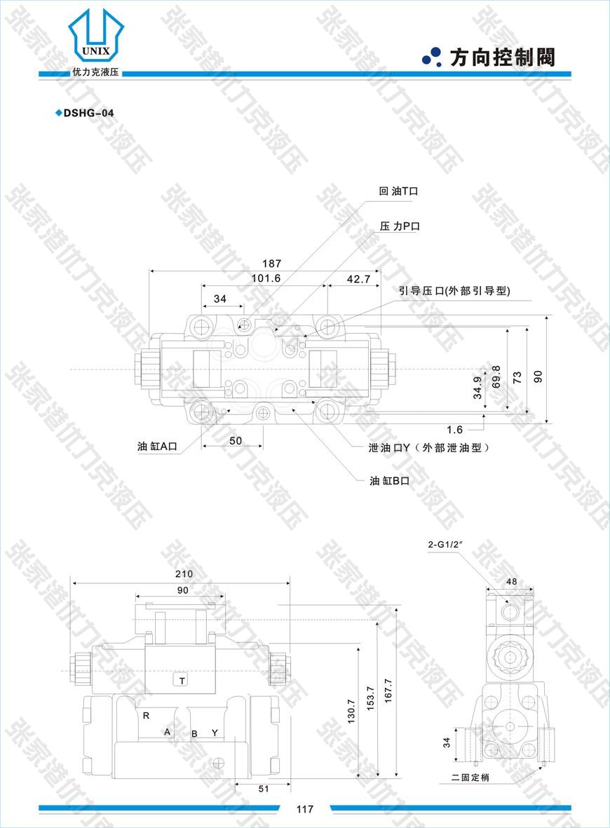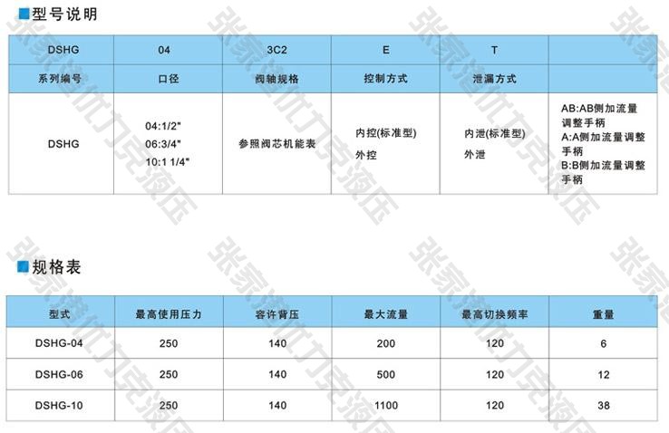4、本系列電液換向閥,必須與電磁閥配合使用,單頭用2B2,雙頭用3C4。