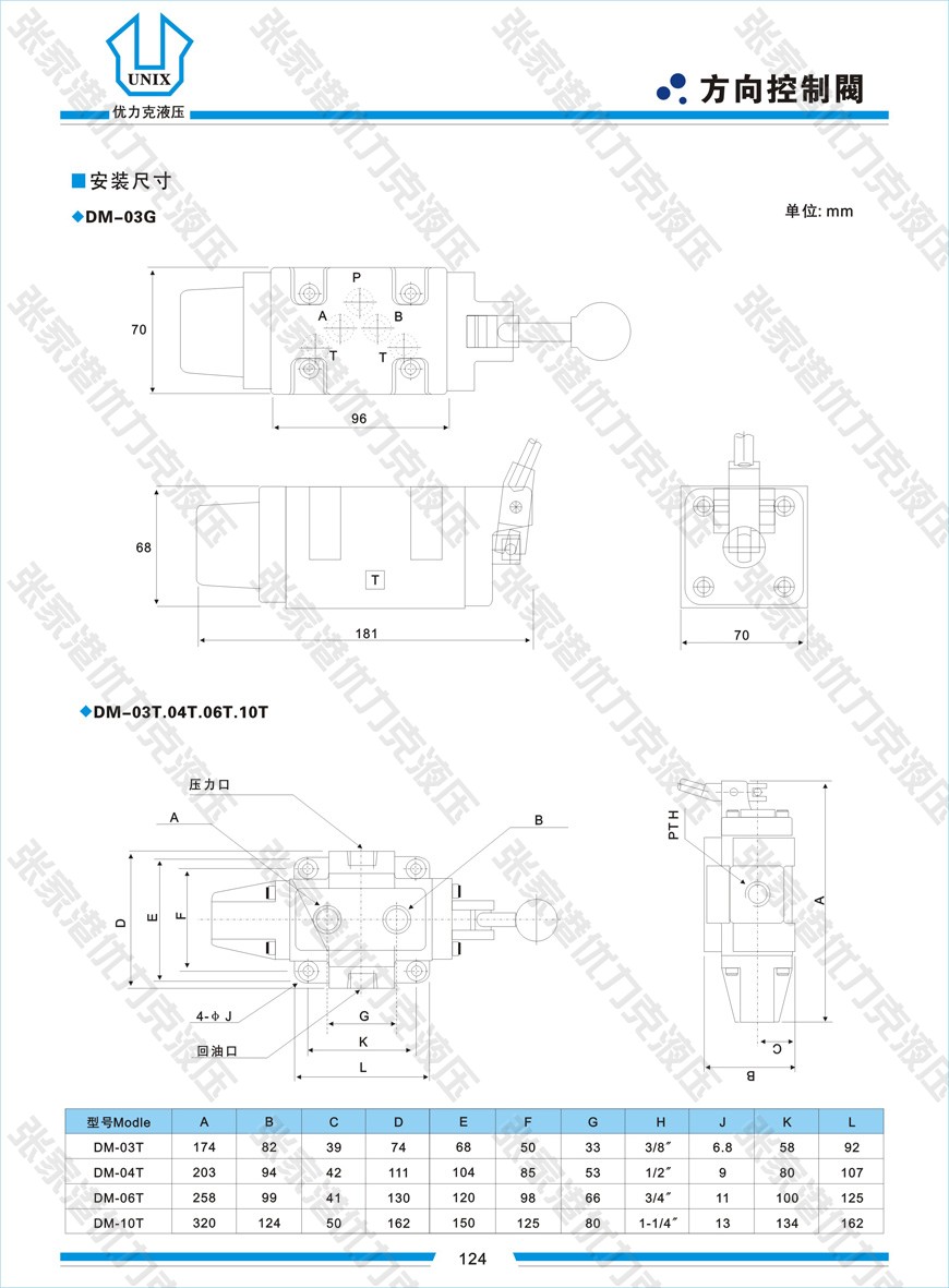 1、該系列換向閥有兩種不同形式彈簧復位型及鋼珠定位型,其適用范圍視各種機械的應用以及要求而選擇彈簧或鋼珠型。