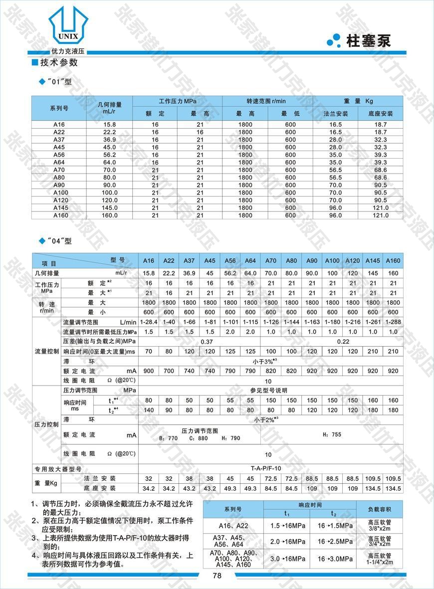 用于液壓開式回路的斜盤結(jié)構(gòu)軸向柱塞泵流量正比于驅(qū)動轉(zhuǎn)速和排量,并能通過調(diào)節(jié)斜盤傾角實現(xiàn)無級變量?!?1”型手動調(diào)節(jié),“04”型改變輸入電流調(diào)節(jié),有單獨的注油口和兩個泄油口供選擇,良好的吸入性能,低噪音,長壽命,節(jié)能特性明顯,反應(yīng)速度快,精度高。